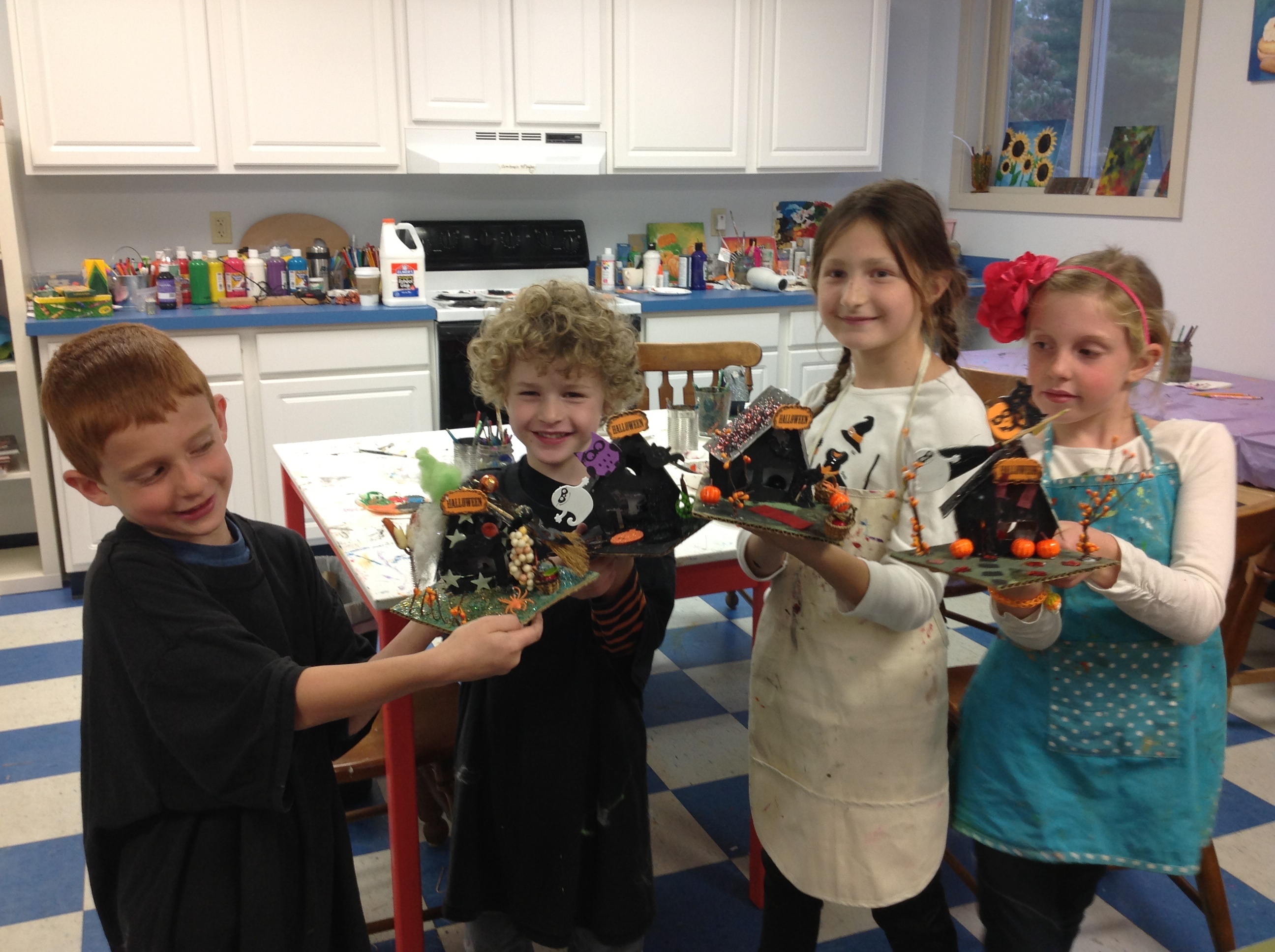 Drop into The Golden Button between 10 AM and 1PM to make a Haunted House! We have ever creepy crawly thing you can imagine… And glitter… We have glitter! And glow in the dark stuff too! cost is $20 per house or create a pumpkin painting for $10 or both for $25!