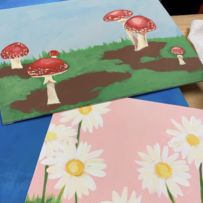 Kids and/ or Adults Paint Night: Daisies and/ or Mushrooms