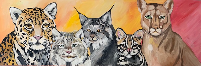 Join us to paint your favorite kind of wild cat! Cheetahs, leopards, lynx, snow leopards and more! Miss Kate will guide you through a fantastic cat painting! Great for kids 5 and up. So much fun! Personalize it with your favorite background colors. Great time with friends.